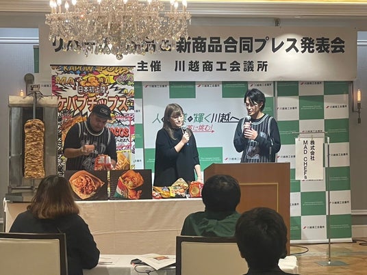 令和6年11月27日(水)川越のラ・ボア・ラクテにて開催された川越商工会議所主催リバーサル商品&新商品合同プレス発表会にてリバーサル(反転、逆転、復活)商品として、以前より販売しておりましたする『ケバブサンド』を『ケバブチップス』にリバーサルして発表いたしました。