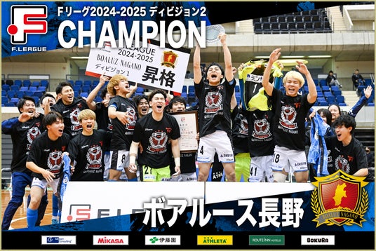 なお、ボアルース長野は、今シーズンのFリーグディビジョン1 年間順位において最下位となり、降格が決定した「ヴォスクオーレ仙台」と入れ替わり、来シーズンよりFリーグディビジョン1 に昇格いたします。