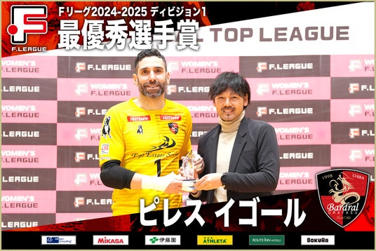 一般社団法人日本フットサルトップリーグ(東京都文京区、理事長:松井 大輔、以下「Fリーグ」)は、2025年2月16日(日)、ファイナルシーズンを開催したパークアリーナ小牧(愛知県小牧市)にて、Fリーグ2024-2025ディビジョン1・2合同の表彰式を実施いたしました。本表彰式では、理事長 松井大輔、副理事長 久保田圭一、専務理事 小野寺隆彦がプレゼンターを務め、各賞の受賞者を発表いたしました。