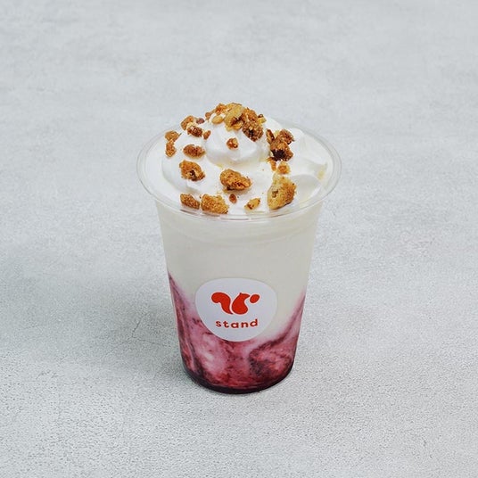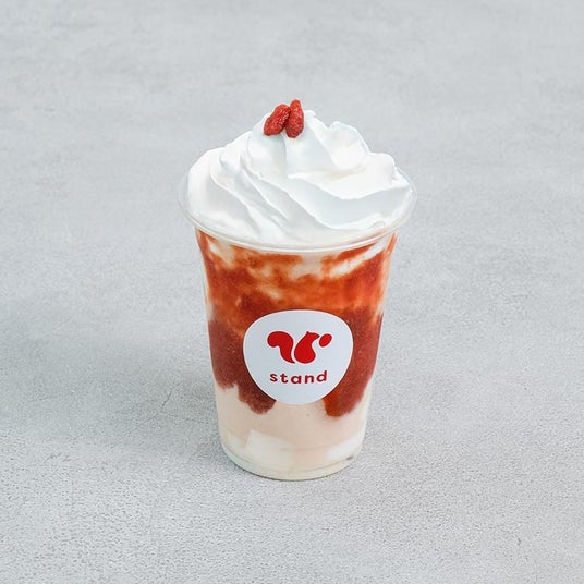 甘酸っぱく爽やかな香りのすももと濃厚な杏仁豆富を楽しめるデザート感覚のフロスタ。果肉感のあるすもものソース、クコの実をトッピングしてリッチな味わいを楽しめます。