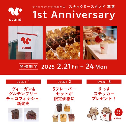【スナックミースタンド蔵前】オープン1周年を記念して、新商品のヴィーガン&グルテンフリーフィナンシェと大変お得な記念セットを販売【2/21(金)~2/24(月)】