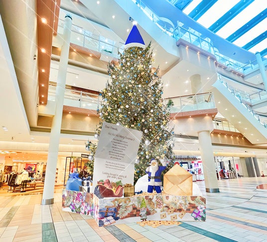館内には、おもちゃや招待状のオーナメントを使用し、サンタがウエストからウォークを通り、イーストまで向かう軌跡を楽しめる装飾になっています。