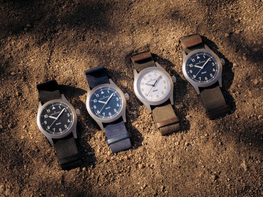 「カーキ フィールド」のオリジンであるミリタリースタイルへのオマージュとして、新しい「カーキ フィールド クォーツ」コレクションは、ミリタリーウェアをモチーフにした配色になっています。
