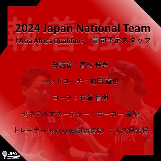 上記目標達成に向けて、JPAは日本代表候補選手とスタッフとともに全力で取り組んで参りますので、ご指導・ご声援のほどよろしくお願いいたします。