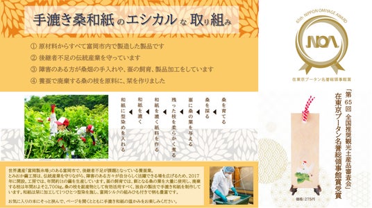 ~養蚕過程で剪定後に廃棄となる桑枝2,700kgを再活用し、和紙製品へ再生。サステナブルなお土産として富岡製糸場内売店でも販売~