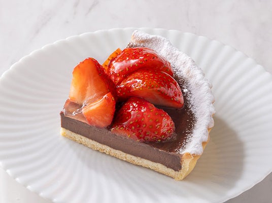 濃厚なチョコレートアパレイユを入れ焼き上げたタルト台に、あまおう苺をたっぷりと飾りました。甘酸っぱい旬のあまおう苺と重厚感のある濃厚ショコラ生地とのマリアージュをお楽しみいただけます。