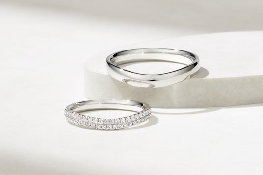 人生の様々なステージ、様々なシーンで身に着けられるよう、ダイヤモンドの輝きを繊細に仕上げたことに加え、形を膨らませ過ぎないスマートなシルエットにし、モダンさを表現しました。1mm以下の細かな調整を何度もおこない導き出した、こだわりの形です。