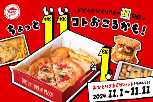 日本ピザハット株式会社(代表取締役社長:篠崎 幸男、本社:神奈川県横浜市、以下:ピザハット)が展開する世界最大級のピザチェーン「ピザハット」は、2024年11月1日(金)から「独身の日」として知られる11月11日(月)までの11日間限定で、「ちょっと11(いい)コトおこるかも!」キャンペーンを実施いたします!