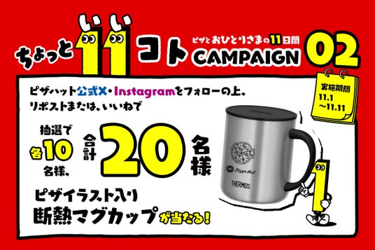 【プレゼント企画】ピザハットの「ピザイラスト入りマグカップ」が抽選で当たる「ちょっと11(いい)コトおこるかも!」キャンペーン開催!