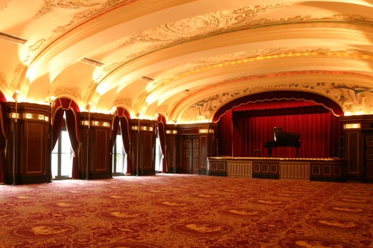 横浜市認定歴史的建造物、近代化産業遺産に認定を受けるホテルニューグランド本館2階の宴会場「レインボーボールルーム」は、漆喰天井に施された精巧で優美な石膏レリーフが重厚なしつらえに華やかな彩りを添えます。歴史薫る空間をお楽しみください。