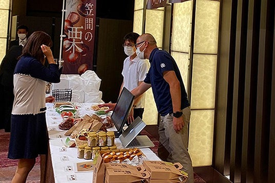 茨城県笠間の栗の菓子・加工品のほか、舞茸や椎茸などの農産物を販売します。