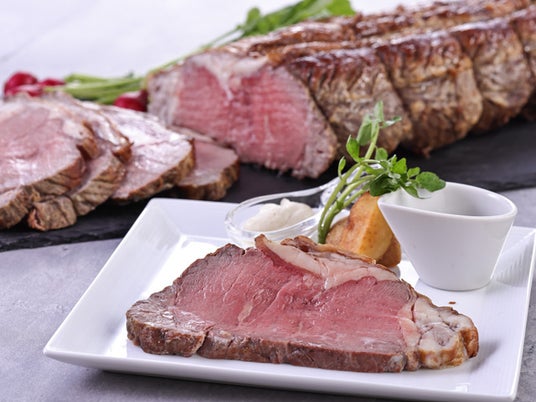 USサーロインのローストビーフ 赤ワインソース レファール添え