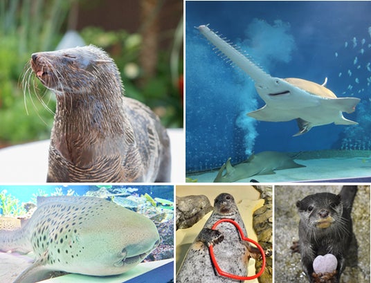 手先の器用さを活かして水槽の底からハートの石を探し、スタッフに手渡す“コツメカワウソ”。ハートに形成したごはんを嬉しそうにほおばるペンギンたち。“ゴマフアザラシ”はハートのループを使ったパフォーマンスを披露します。