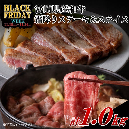 ★宮崎県産和牛霜降りステーキ&スライス計1.0kgネット価格11,750円