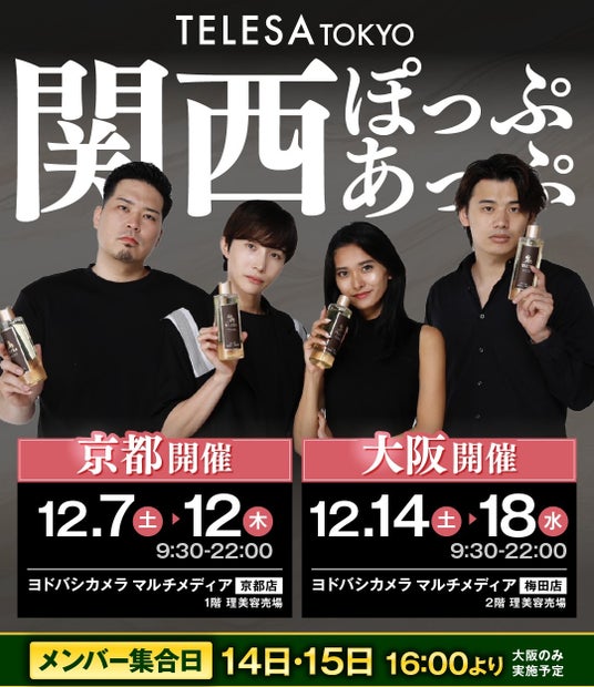 時代を先駆けるヘア&ボディケア美容ブランドTELESA TOKYO(所在地:東京都品川区、代表取締役:車谷セナ)は、ヨドバシカメラと連携し、関西エリア2店舗にてTELESA商品のポップアップショップの開催を致します。
