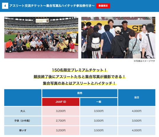 2.アスリート交流付きチケット(~集合写真&ハイタッチ参加券付き~)