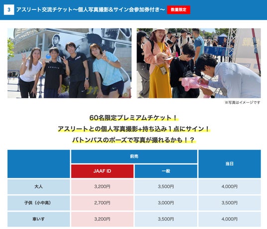 1.アスリート交流付きチケット(~個人写真撮影&サイン会参加券付き~)