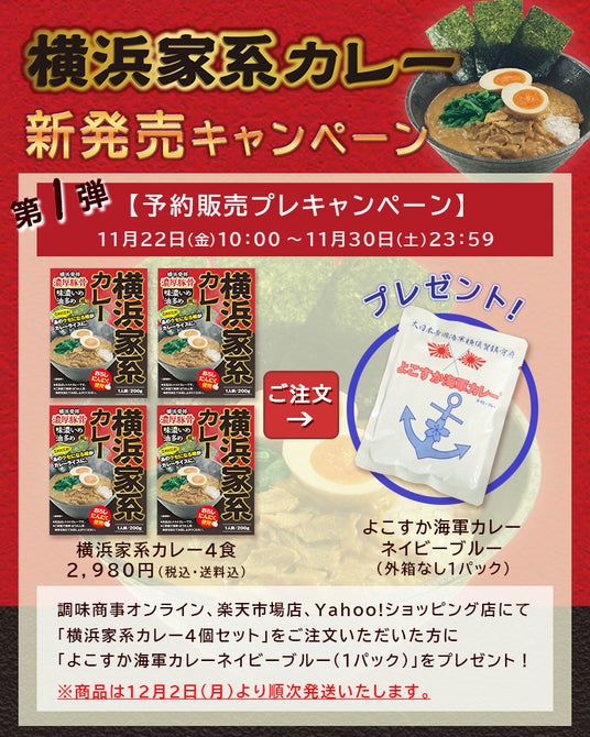 【レトルト史上初】『横浜家系カレー』12/1に新発売!〈横浜発祥 濃厚豚骨 味濃いめ 油多め〉風のあのクセになる味がカレーライスに! 家系カレー発売記念キャンペーン実施!!