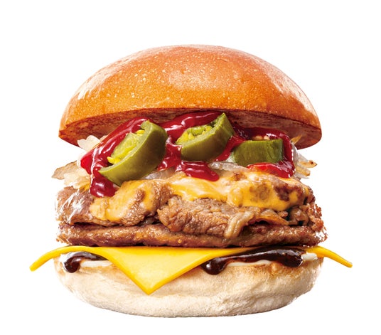 商品概要:「フィリーチーズステーキバーガー」にピリッとした辛みが特長のハラペーニョと特製旨辛ソースを合わせました。チーズのまろやかな味わいに、スパイシーな風味がアクセントの食欲をそそる一品です。