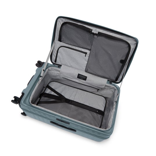 狭いスペースでも荷物を出し入れしやすいフラップトップオープンのキャリーケース。