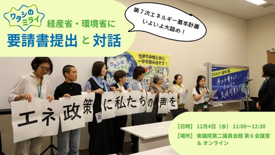 【ワタシのミライ】《12月4日(水)11時~》第7次エネルギー基本計画素案提示に向けて 経産省・環境省に要請書提出と対話
