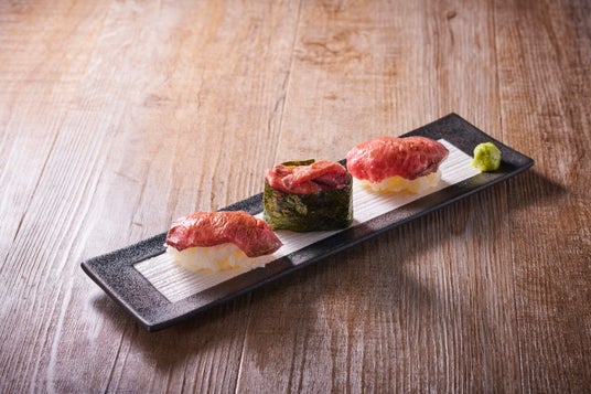 鹿児島県産 A5等級 薩摩牛4%の奇跡「ローストビーフ寿司~特製タレ~」 500円(税込550円)