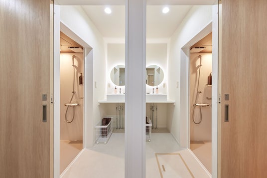 また、1階にも別途シャワールームを2か所設置。それぞれに洗面台を設けています。