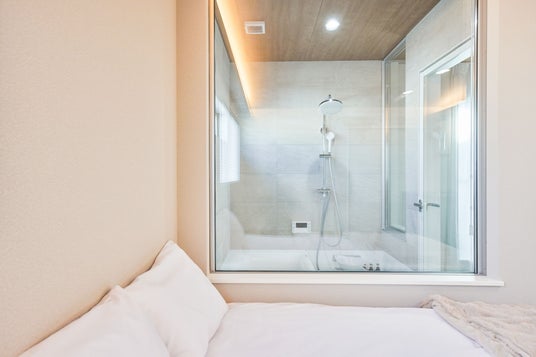 今回の施設一番の特徴は3階の主寝室にあるガラス張りのバスルームです。