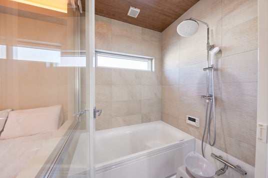 浴室内は大理石を模した壁と幅のあるシャワーヘッドを設置し、まるで海外雑誌の中のインテリアのような雰囲気を再現しました。