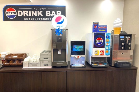 ファミリー層を意識し、ソフトドリンクバーやソフトクリームバーを設置。