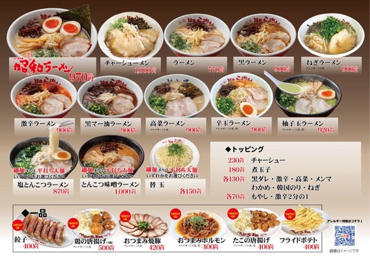 独自の製法でスープを骨から炊き出し、味の要となる秘伝の”かえし”を開発。以来50余年、九州を中心に国内では83店舗を展開している”田川のソウルフード”です。