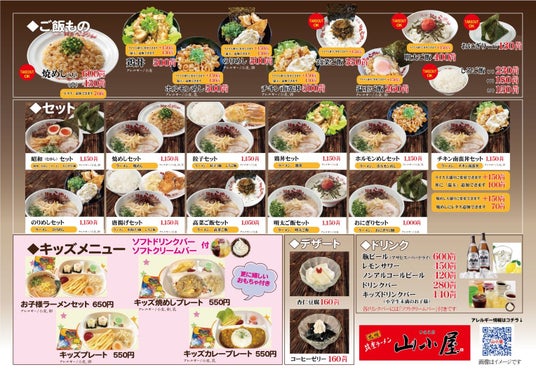 また、山小屋特製の餃子や焼飯などのサイドメニューや、ラーメンと一品メニューとのセットなど11種類を販売。さらにファミリー層を意識した、ソフトドリンクバー・ソフトクリームバー付きのキッズメニュー4種類も販売します。