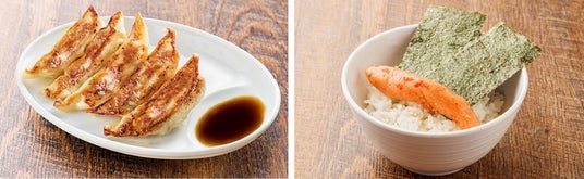 ◆餃子(5個):400円(写真左)◆明太丼:400円(写真右)