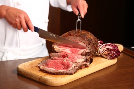 シェフが目の前でカッティングする道産牛のローストビーフ
