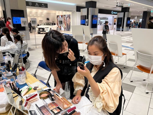 メイク・ネイル学科の学生によるパーソナルカラー診断と自分に合った「似合わせメイク」をレクチャーする体験イベントを開催。