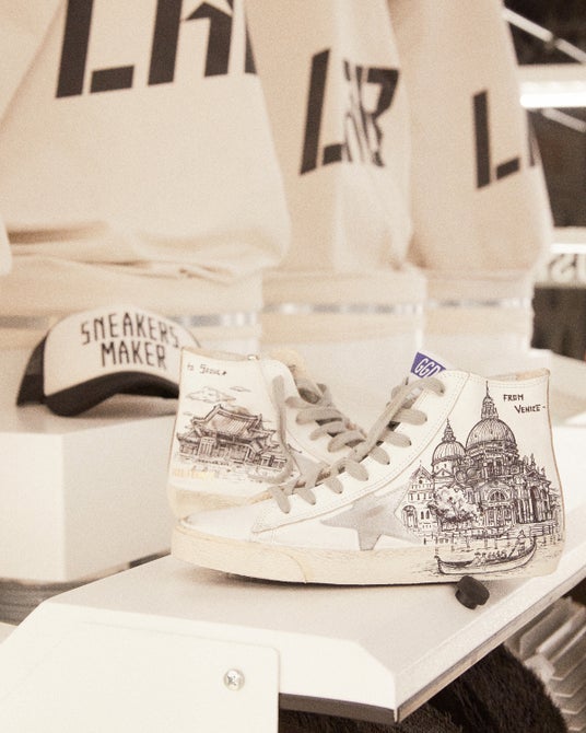 2000年にイタリア・ヴェネツィアで誕生したGolden Goose(ゴールデン グース)は、スニーカーの素材調達、デザインと流通に特化し、ラグジュアリー、ライフスタイル、スポーツウェアを横断する事業を展開しています。その中でもアイコン的存在となったスニーカーをはじめ、アパレル、バッグ、アクセサリーなど “Made in Italy”の品質の高さと細部へのこだわり、そして “lived-in” (使い込まれた加工)が特徴となっています。