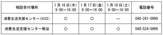 消費生活総合センター Tel 048-645-3421 Fax 048-643-2247