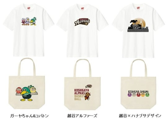 また、越谷特別市民「ガーヤちゃん」やB1リーグに昇格した「越谷アルファーズ」をはじめ、「越谷だるま」などの地域資源をデザインした、オリジナルTシャツやトートバックが販売されます。