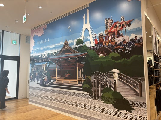 このたび、県内最大店舗となる「ユニクロ イオンレイクタウンkaze店」の9月13日(金)のオープンにあわせ、市内の「ハナブサデザイン」による越谷の景観や伝統・文化をモチーフにした壁画アートを展示するとともに、5本の一級河川が流れ大相模調節池などとともに形作られた水辺空間並びに、にぎわいを生む観光資源、伝統的手工芸品等を紹介し、越谷の魅力を発信します。