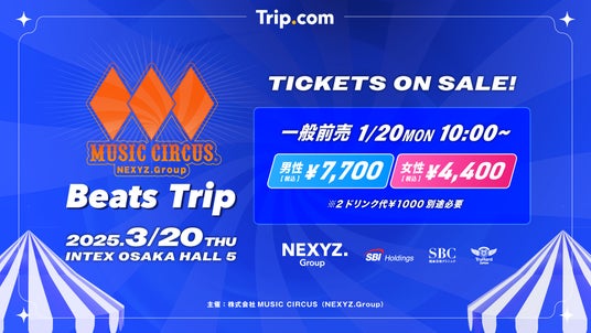 株式会社MUSIC CIRCUS(東京都渋谷区)は、音楽フェスティバル「MUSIC CIRCUS -Beats Trip-」の一般前売チケットを1月20日(月)より発売いたします。出演アーティストやチケット詳細については、随時公式ホームページ・各種SNSにてご案内いたします。