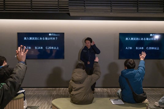 の形成プロセスや冬ならではの観光の魅力を、会話形式で意見を出し合いながらわかりやすく伝えるデ