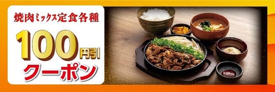宮本むなし公式アプリでは、販売期間中に何度でも使える「焼肉ミックス定食各種100円引きクーポン」を配信いたします。会員の方限定でご利用いただけるクーポンですので、この機会にぜひ宮本むなし公式アプリをダウンロード&会員登録ください。