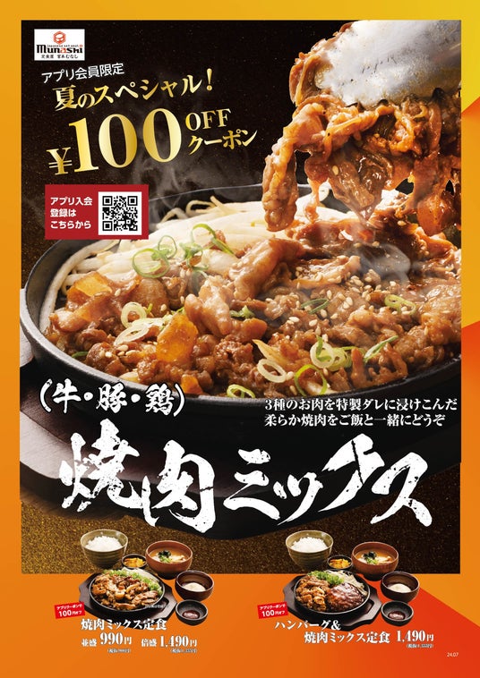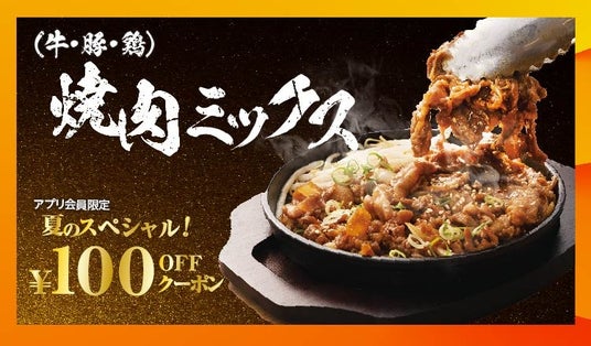暑い日が続いておりますが、宮本むなし公式アプリでは夏のスペシャルクーポンとして「焼肉ミックス定食各種100円引き」クーポンを配信しております。