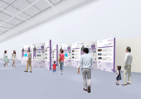 「震災伝承・災害対応」、「食・水産」、「最新技術」や「福島国際研究教育機構(FREI)」など、大きく4つをテーマとする「復興のストーリー」の展示を予定しています。