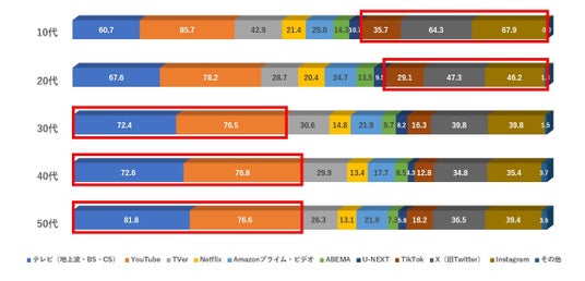 世代別で見ると、30代以降は「YouTube」「テレビ(地上波・BS・CS)」が共に約7割以上存在する一方で、10~20代は「テレビ(地上波・BS・CS)」が6割に留まりました。その理由として、10~20代はTikTokやX(旧Twitter)、InstagramなどのSNSを活用している割合が他世代に比べ多くなっていることから、推し活で活用するプラットホームは世代で異なり、普段見ているメディアの影響も考えられる結果となりました。