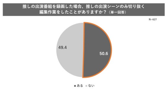 《レコーダー所持ユーザーは、2人に1人が推しの出演部分のみ切り抜く編集作業を行っていることが判明。しかし、8割の人が編集作業にストレスを感じている実態》