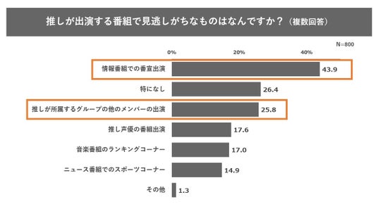 《推しが出演する番組で見逃しがちなのは「情報番組での番宣出演」と半数近くの人が回答》