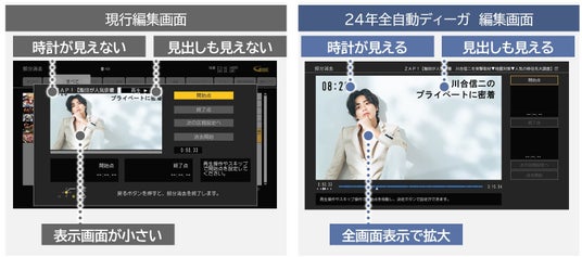 さらに、8割の人がストレスを感じている出演部分の編集作業も、よりスムーズに行えるよう編集画面をリニューアルしました。『全自動ディーガ』を使って録画も編集も手間なく簡単に行うことで、推し活ライフをより快適に楽しむことができます。