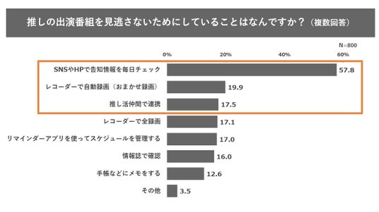 《推しの出演番組を見逃さないためにしていること1位は「SNSやHPで告知情報を毎日チェック」、