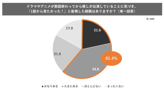 《6割がドラマやアニメが数話終わってから推しの出演に気づき「1話から見たかった!」と後悔した経験がある》